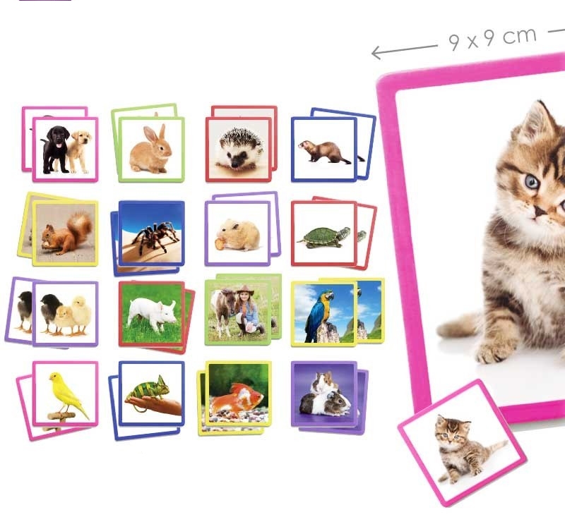 Het spel bestaat uit 34 kaarten van dik stevig karton. Afmeting van de kaarten is 9 x 9 cm. Er zijn meerdere spelmogelijkheden. De eerste variant is de meest bekende: geheugenspel: leg de kaarten met de achterkant naar boven. Om de beurt 2 kaarten omdraaien. Als de kaarten bijelkaar horen dan men men deze houden. Als dat niet zo is dan worden de kaarten op de zelfde plaats met de achterkant naar boven teruggelegd. Degene met de meeste kaarten is de winnaar!