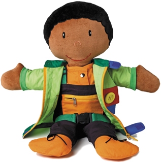 Super grote mooie pop om verschillende sluitingen mee te oefenen, zoals ritsen, knopen en vetersstrikken. Deze pop heeft 3 lagen kleding aan. Shirt, tuinbroek en jas. De actiepop kan gewassen worden to 30 graden. Lengte van de pop is 53 cm.