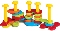 De set bestaat uit kleurrijke, goed vast te pakken vormen, leert stapelen, sorteren, schroeven en construeren, 28 delige set: vormen in vier kleuren, enkele pennen, schroeven, enz.