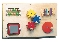 Met onder andere kralen, een draaiende spiegel en drie in elkaar grijpende raders. Afmeting 46 x 76 cm